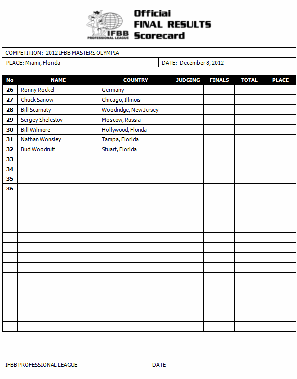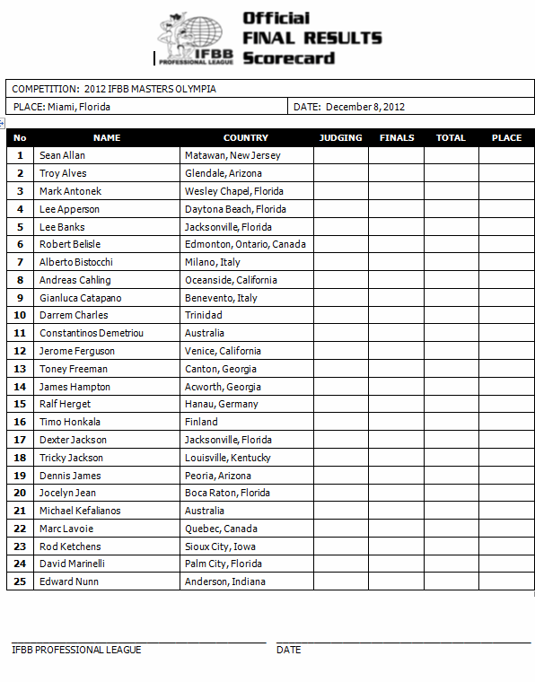 *The Masters Olympia is open to IFBB Pro League competitors 40 years of age or older