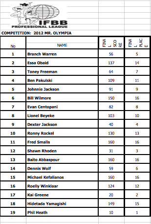Shawn Rhoden, competing in his second Olympia, continued his banner year by placing third over some of the biggest names in the sport. Dexter Jackson managed to turn back to the clock with his best performance in years and was rewarded with fourth.