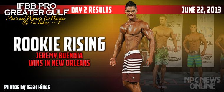 The 22-year-old Buendia switched to the relatively new division less than one year ago. Since then he’s won all five of his Men’s Physique competitions, a streak that now includes the first IFBB win of his career – in his very first professional contest – at the Greater Gulf States in Metairie, Louisiana on Saturday night. Buendia, a former middleweight bodybuilder, was making his pro debut just five weeks after winning the Overall at the NPC Junior USA Championships.