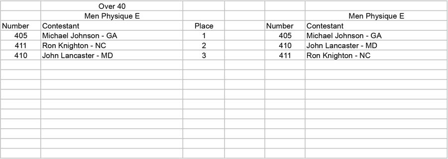 MEN’S BODYBUILDING MASTERS OVER 40 DIVISIONS