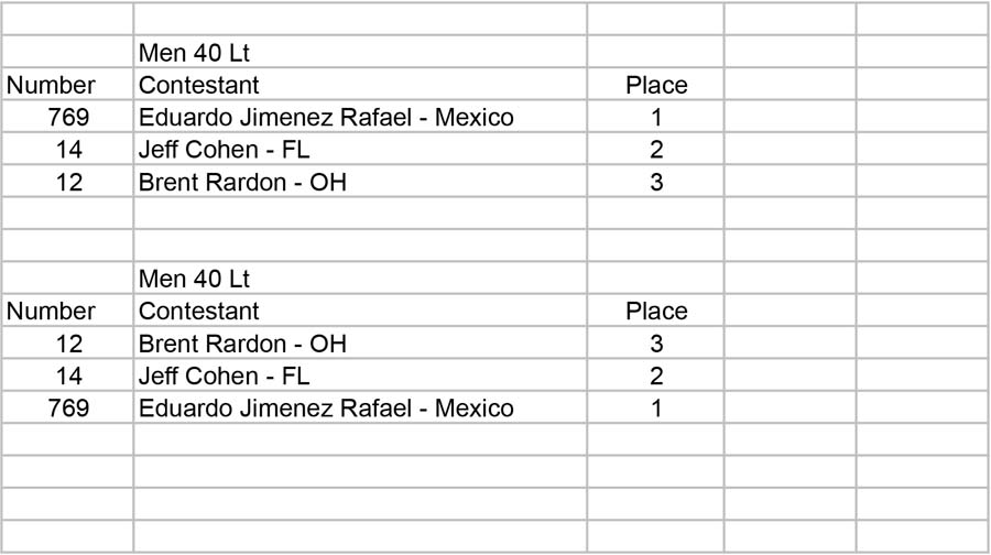 2013 IFBB North American Championships: Men’s Score Sheets