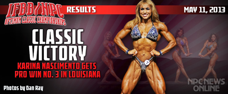 Karina Nascimento’s name is already in history books as the first-ever winner of an IFBB Pro League Women’s Physique contest. After her win at the Optimum Classic in Shreveport, Louisiana on Saturday, Nascimento is now assured of being part of another first: the inaugural Women’s Physique Showdown on Olympia Weekend.