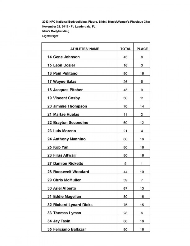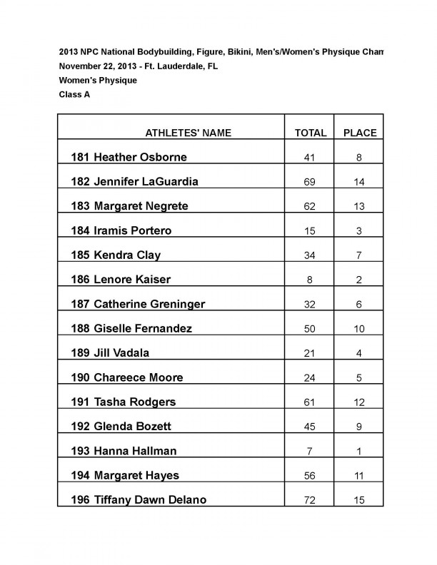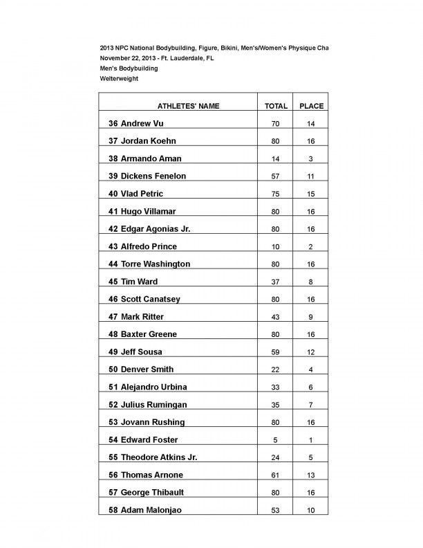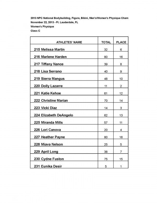 2013 NPC NATIONAL BODYBUILDING CHAMPIONSHIPS: Official Score Cards November 24, 2013November 26, 2013Articles, Features SHARE Facebook Twitter Pinterest Official results from the 2013 NPC National Championships.BIKINI FIGUREMEN’S BODYBUILDINGMEN’S PHYSIQUEWOMEN’S PHYSIQUE WOMEN’S BODYBUILDING