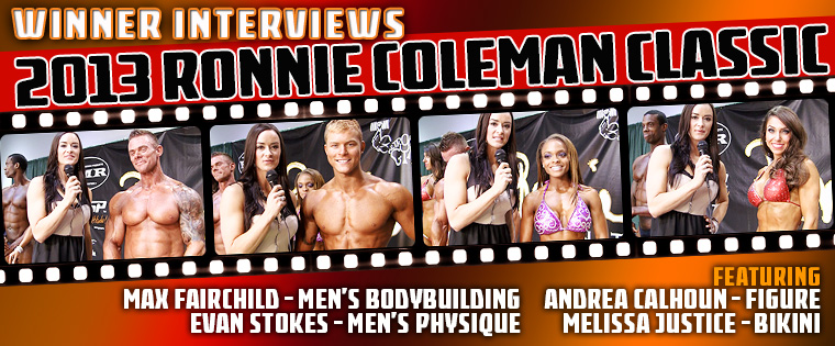 Interviews with the Overall winners in Men’s Bodybuilding, Men’s Physique, Bikini and Figure at the 2013 NPC Ronnie Coleman Classic