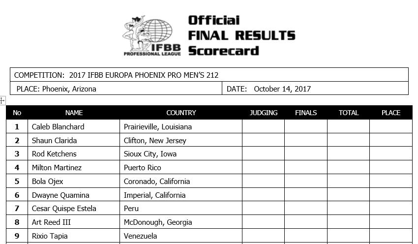 2017 IFBB Europa Phoenix Pro Competitor List: Men’s 212, Women’s Fitness October 13, 2017October 13, 2017Articles, Features SHARE Facebook Twitter Pinterest