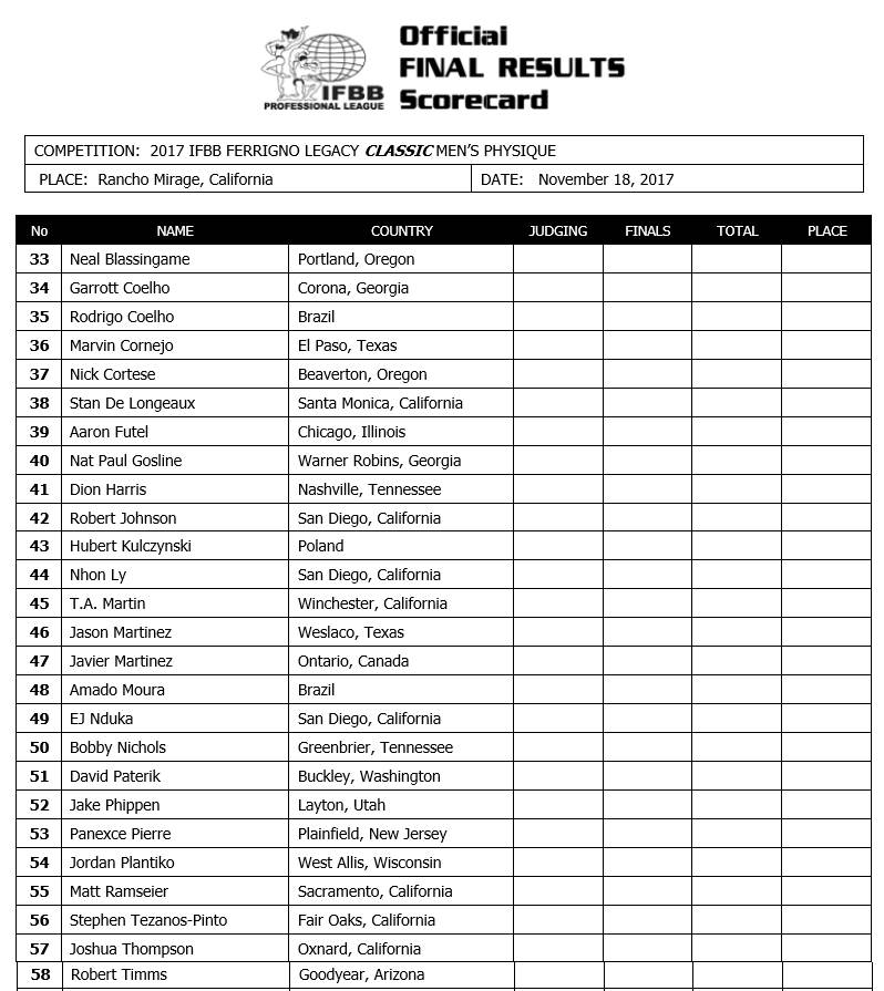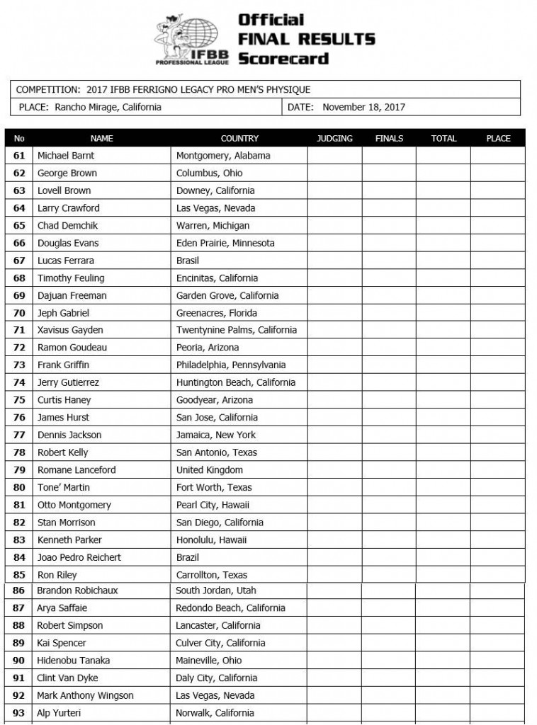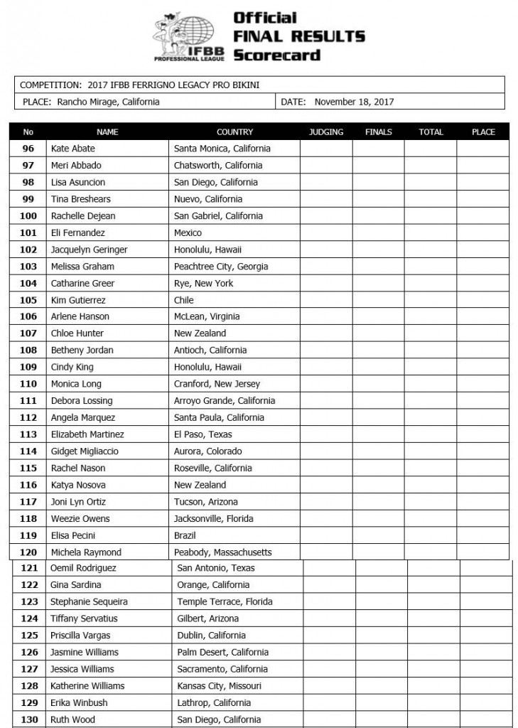 2017 IFBB Ferrigno Legacy Competitor List: November 18th & 19th 2017 November 14, 2017November 14, 2017Articles, Features SHARE Facebook Twitter Pinterest 2017 IFBB Ferrigno Legacy Competitor List: November 18th & 19th 2017
