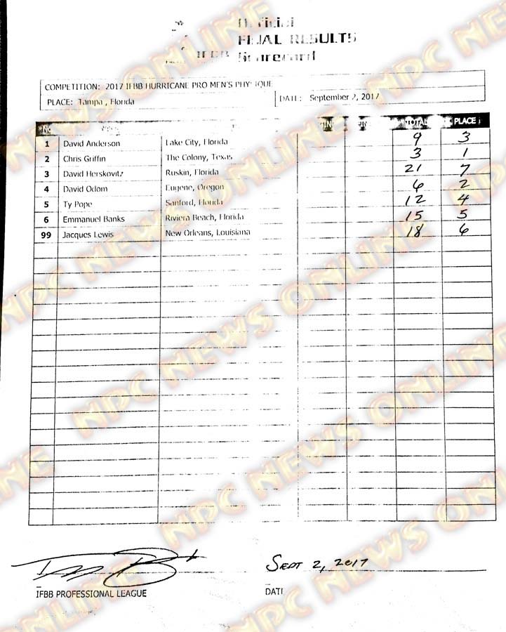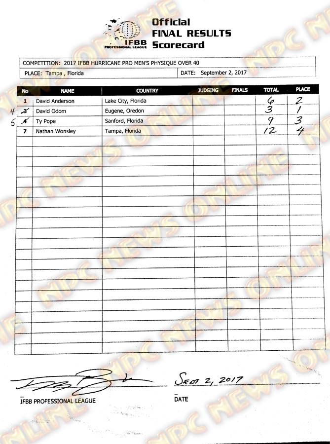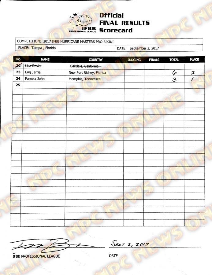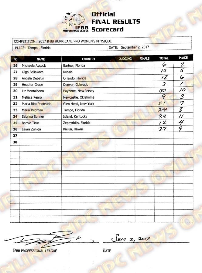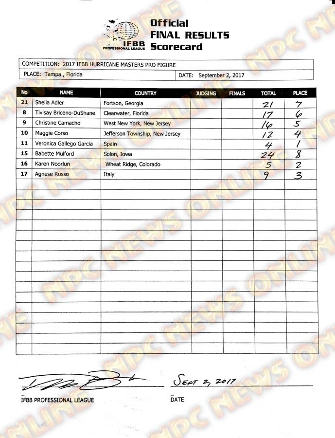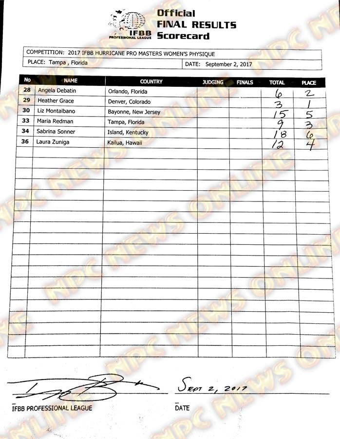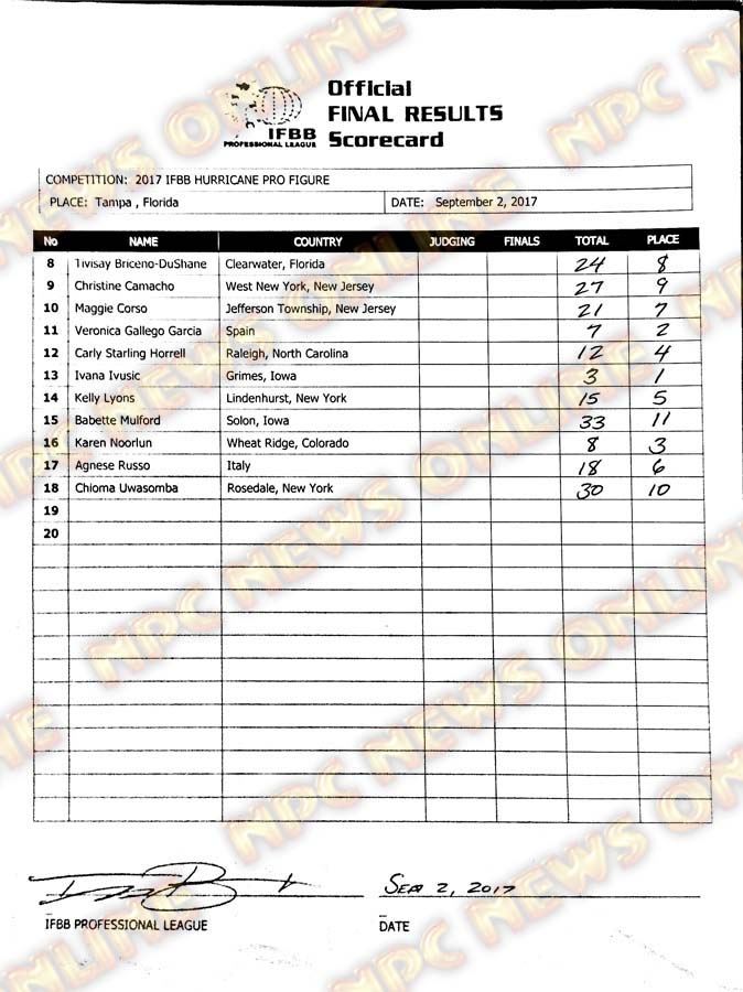 2017 IFBB Hurricane Pro Official Scorecards September 2, 2017Articles, Contest Scorecards, Features, Reports SHARE Facebook Twitter Pinterest