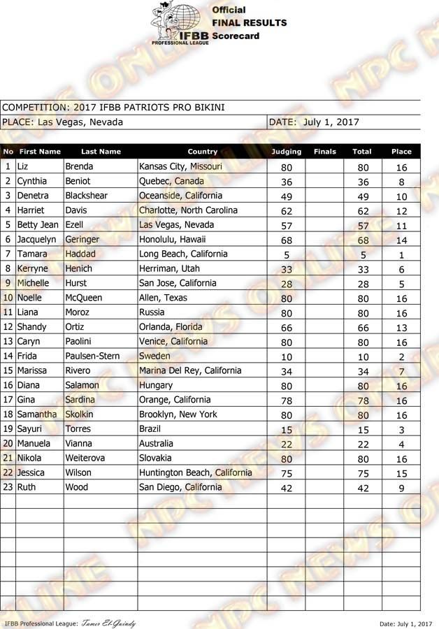 2017 IFBB Patriots Pro Official Score Cards July 4, 2017July 4, 2017Articles, Contest Scorecards, Features, Reports SHARE Facebook Twitter Pinterest