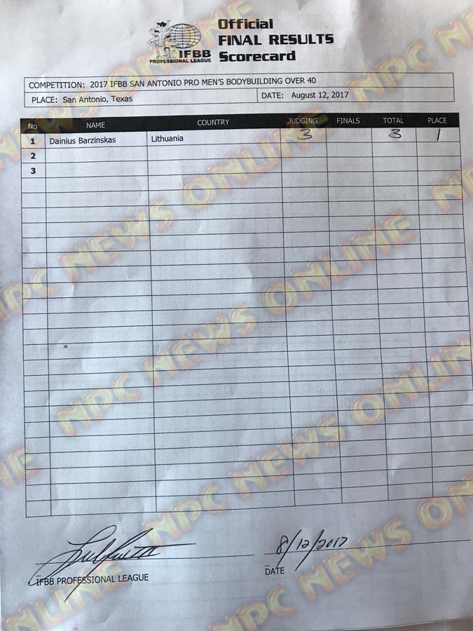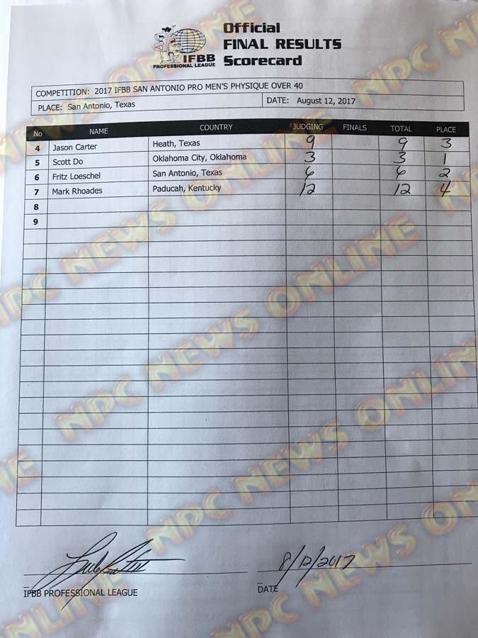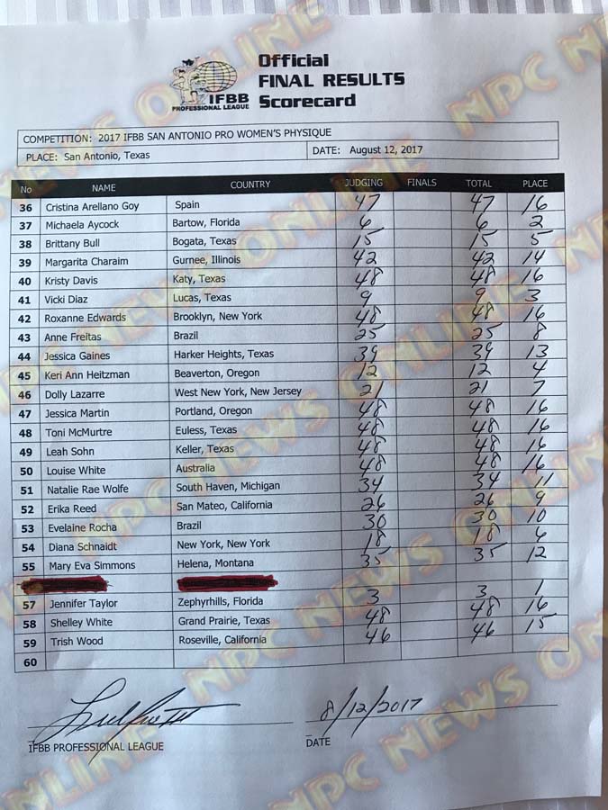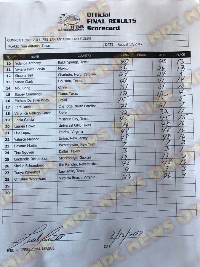 2017 IFBB San Antonio Pro Official Score Cards August 12, 2017Articles, Contest Scorecards, Features, Reports SHARE Facebook Twitter Pinterest