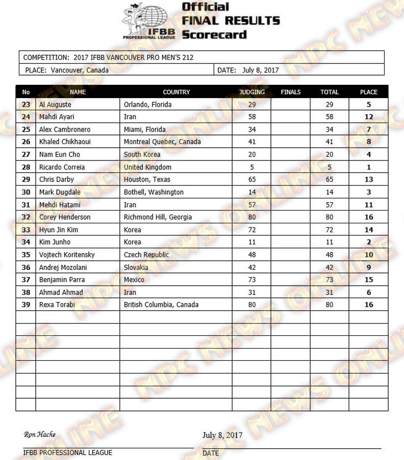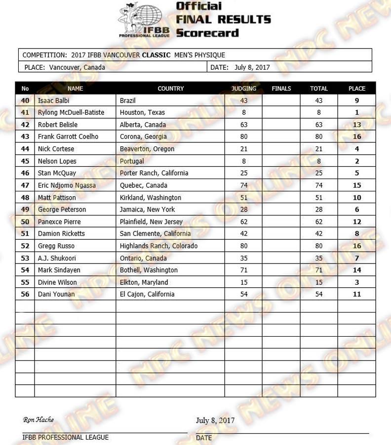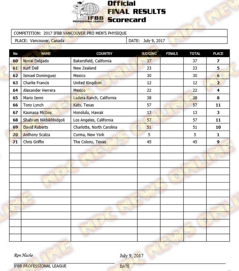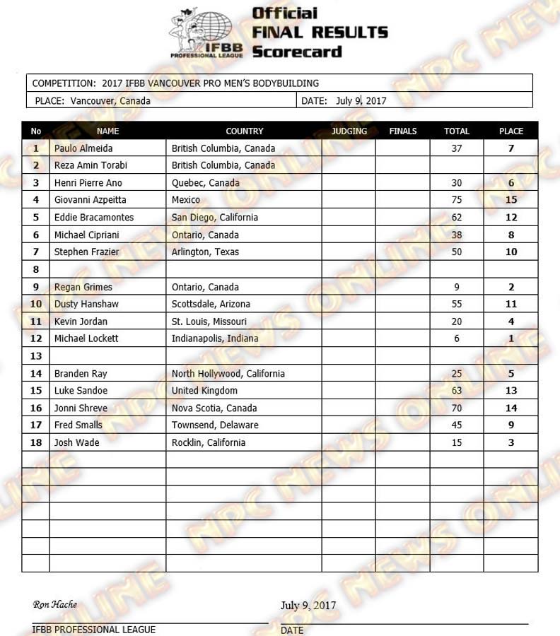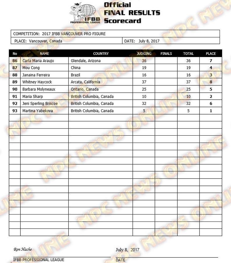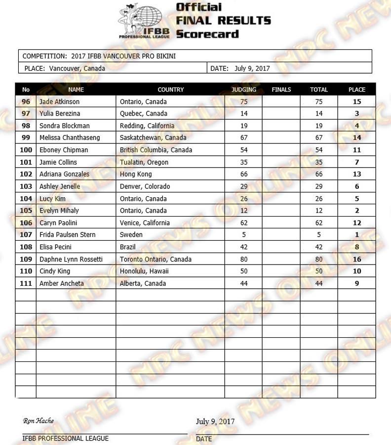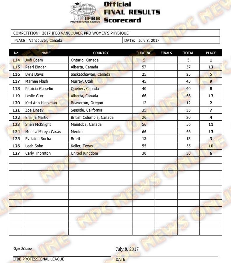 2017 IFBB Vancouver Pro Official Scorecards July 10, 2017July 10, 2017Contest Scorecards, Reports SHARE Facebook Twitter Pinterest