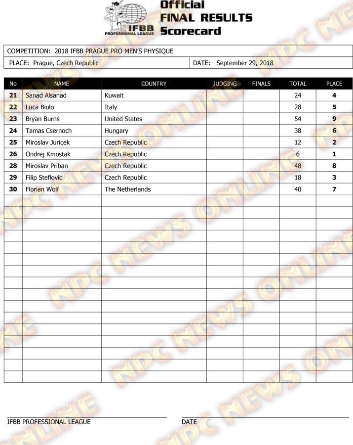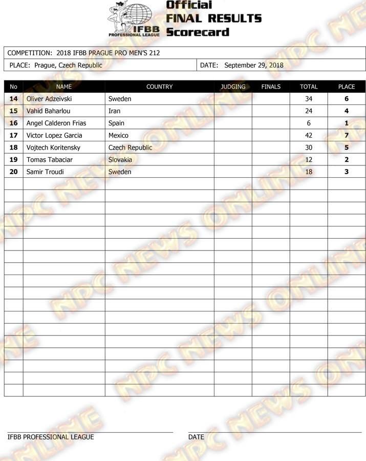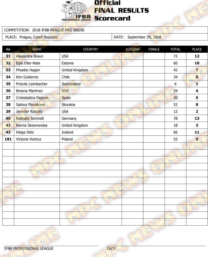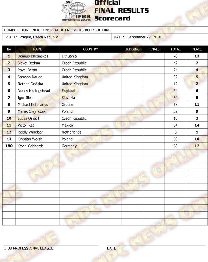 2018 IFBB EVLS Prague Pro Official Score Cards October 1, 2018Articles, Contest Scorecards, Features, Reports SHARE Facebook Twitter Pinterest