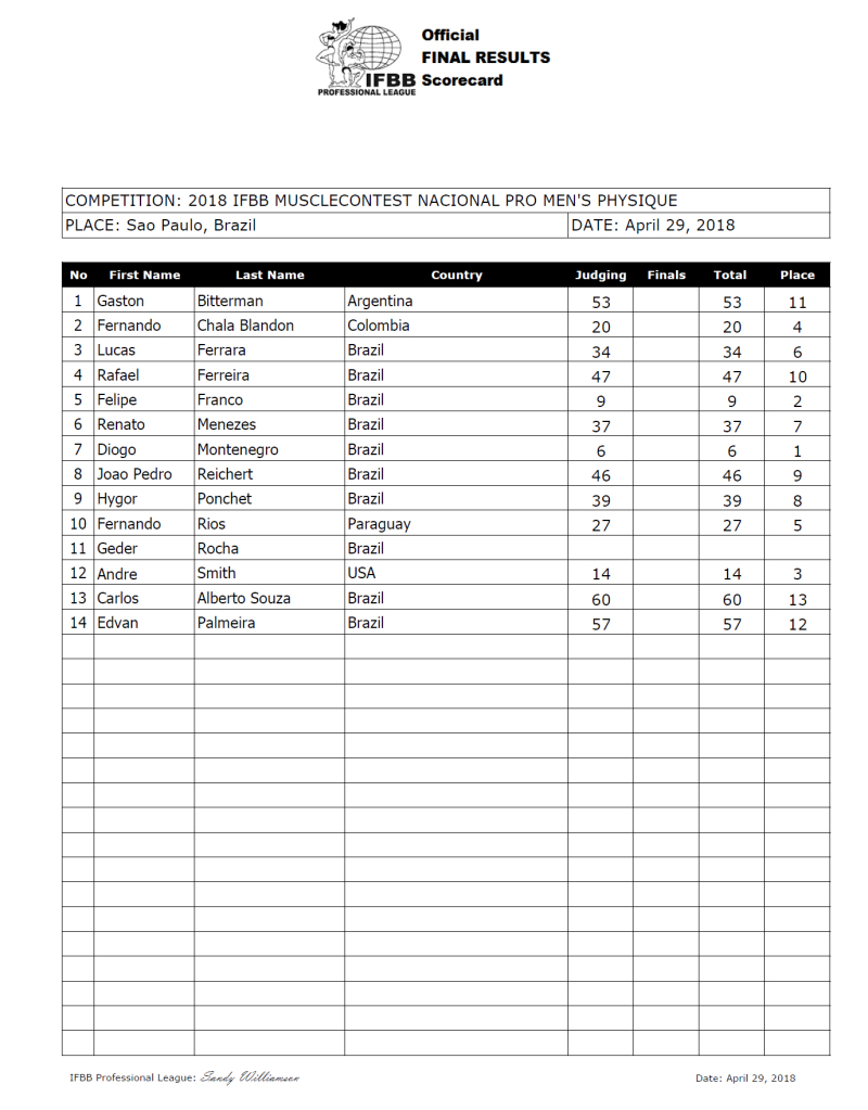 2018 Musclecontest Nacional Scorecards April 29, 2018April 30, 2018Articles, Contest Scorecards, Features, Reports SHARE Facebook Twitter Pinterest