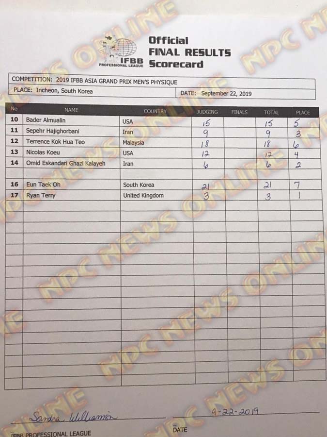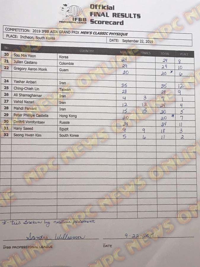 2019 IFBB Asia Grand Prix Official Score Cards September 22, 2019September 22, 2019Articles, Contest Scorecards, Features, Reports SHARE Facebook Twitter Pinterest