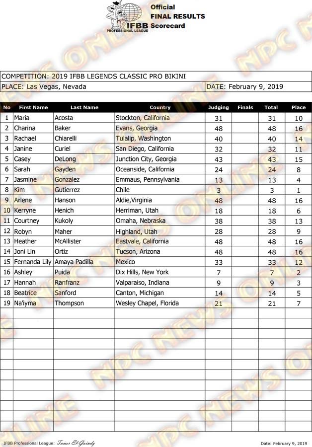 2019 IFBB Legends Classic Pro Official Score Cards February 10, 2019February 10, 2019Articles, Contest Scorecards, Features, Reports SHARE Facebook Twitter Pinterest