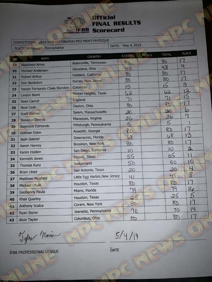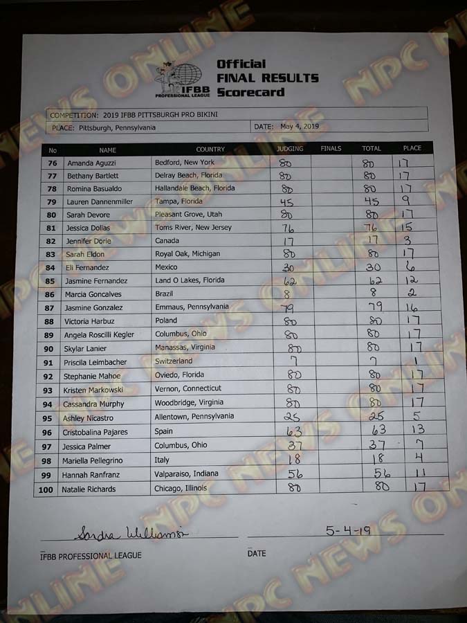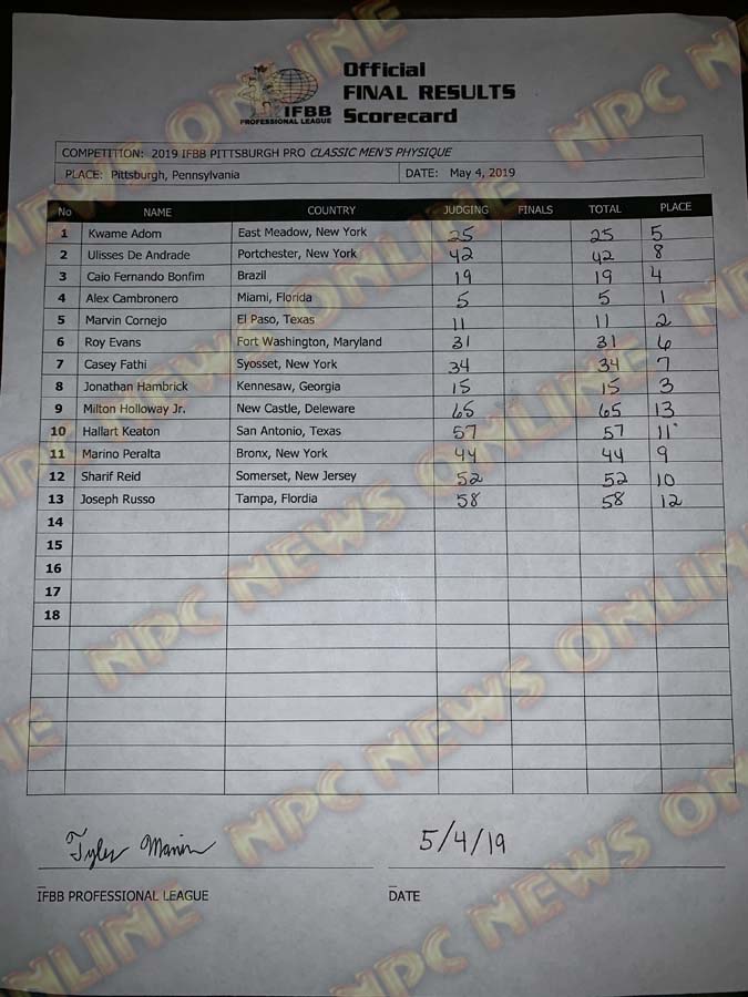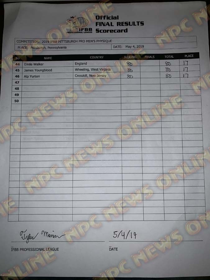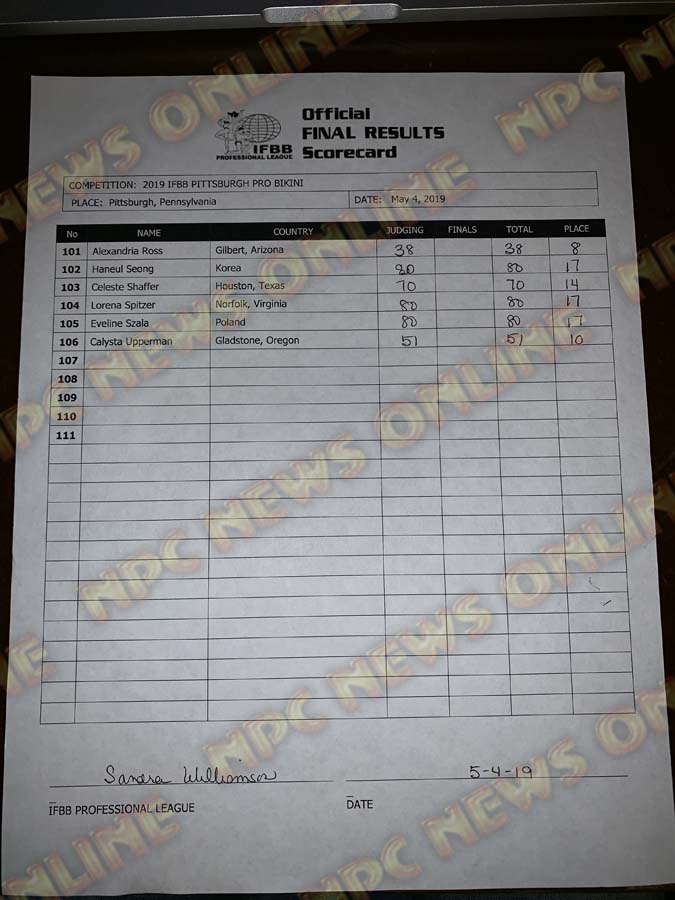 2019 IFBB Pittsburgh Pro Official Score Cards May 4, 2019Articles, Contest Scorecards, Features, Reports SHARE Facebook Twitter Pinterest
