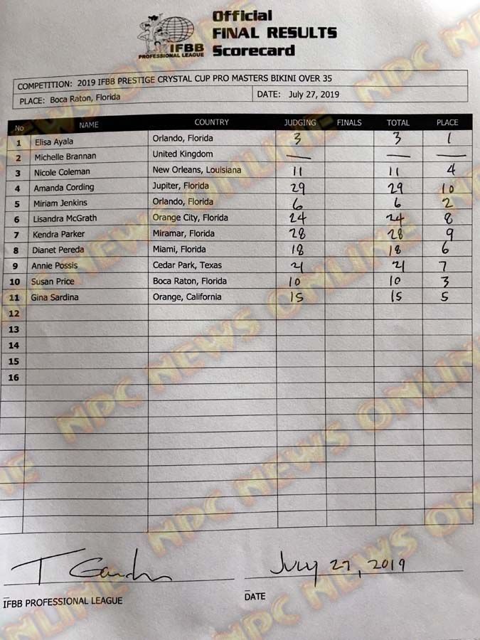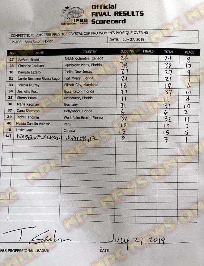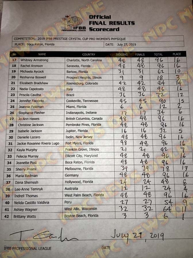 2019 IFBB Prestige Crystal Cup Official Score Cards July 27, 2019Articles, Contest Scorecards, Features, NPC, Reports SHARE Facebook Twitter Pinterest