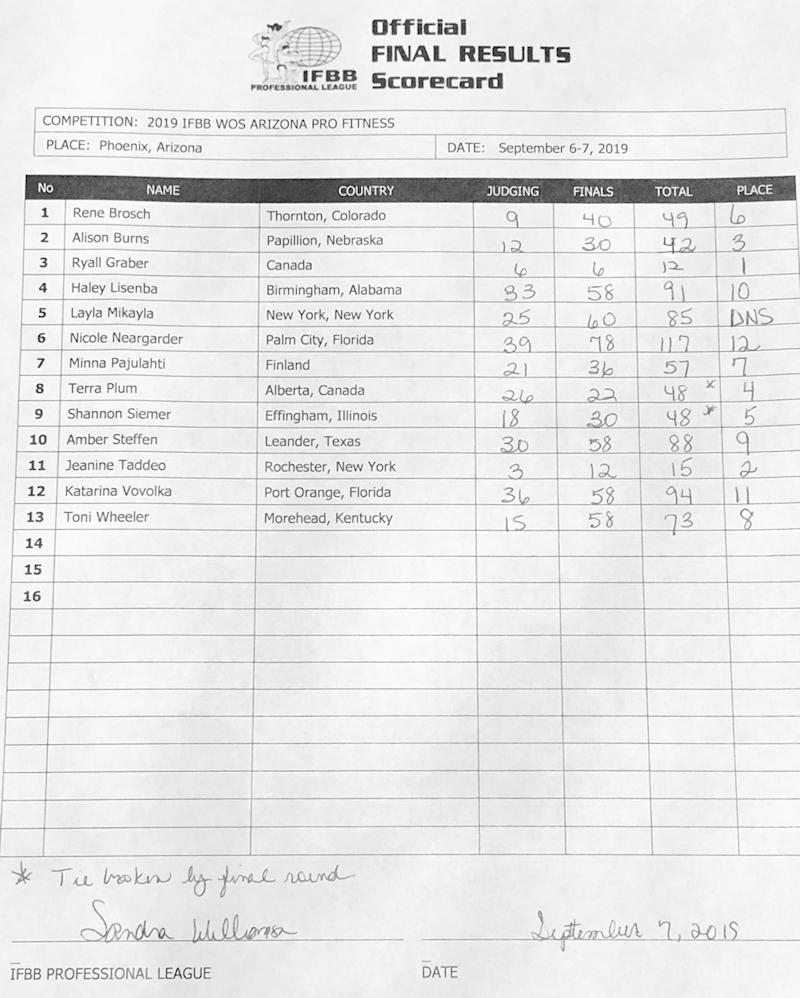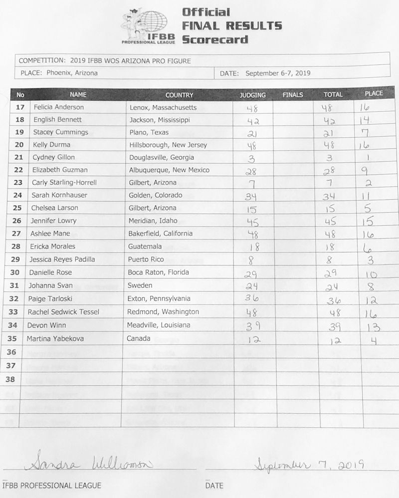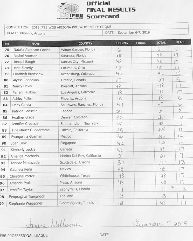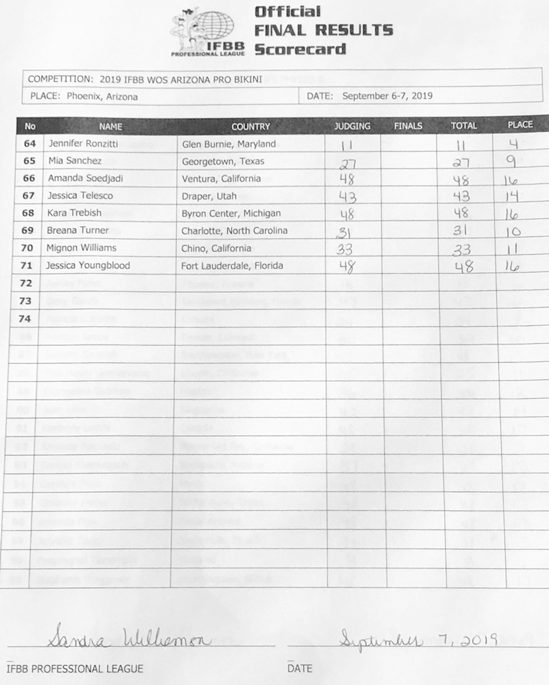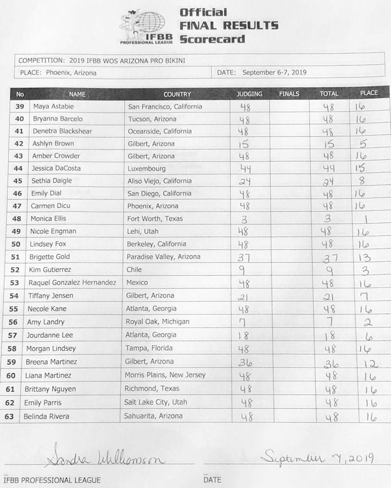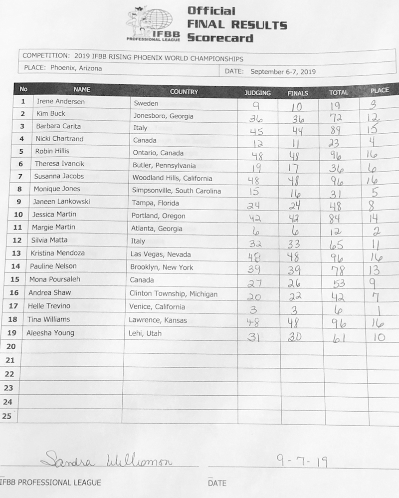 2019 IFBB Rising Phoenix and Arizona Pro Official Score Cards September 8, 2019September 8, 2019Articles, Contest Scorecards, Featured, Features, NPC Report SHARE Facebook Twitter Pinterest