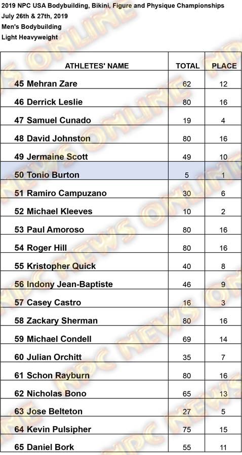 2019 NPC USA Championships Official Score Cards July 28, 2019Articles, Contest Scorecards, Features, NPC, Reports SHARE Facebook Twitter Pinterest