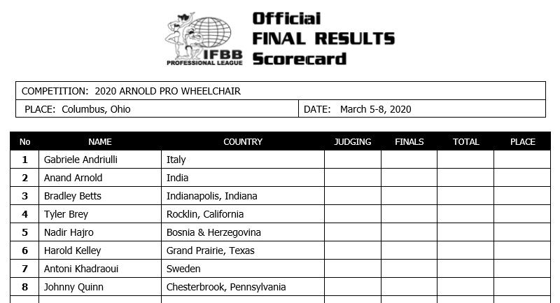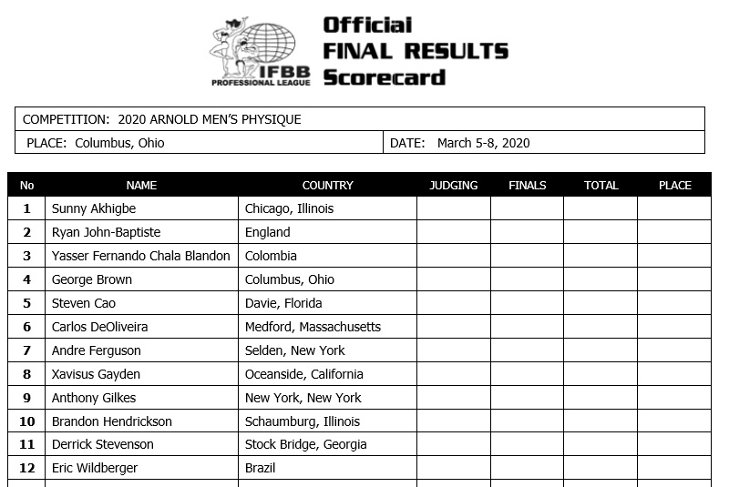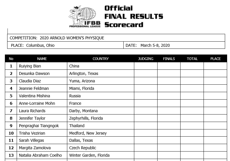 2020 IFBB Arnold Classic Competitor Lists February 27, 2020Articles, Features, Reports SHARE Facebook Twitter Pinterest