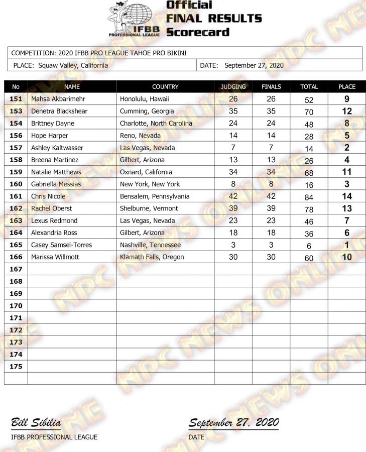 2020 IFBB Pro Tahoe Show Official Score Cards September 27, 2020Articles, Contest Scorecards, Featured, Features, NPC, Reports SHARE Facebook Twitter Pinterest
