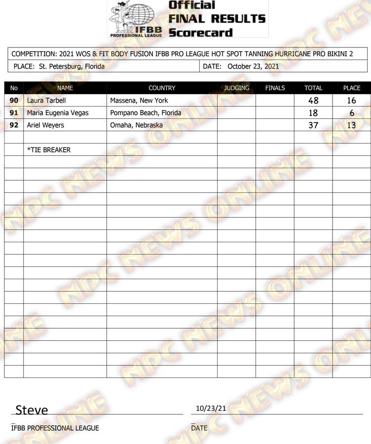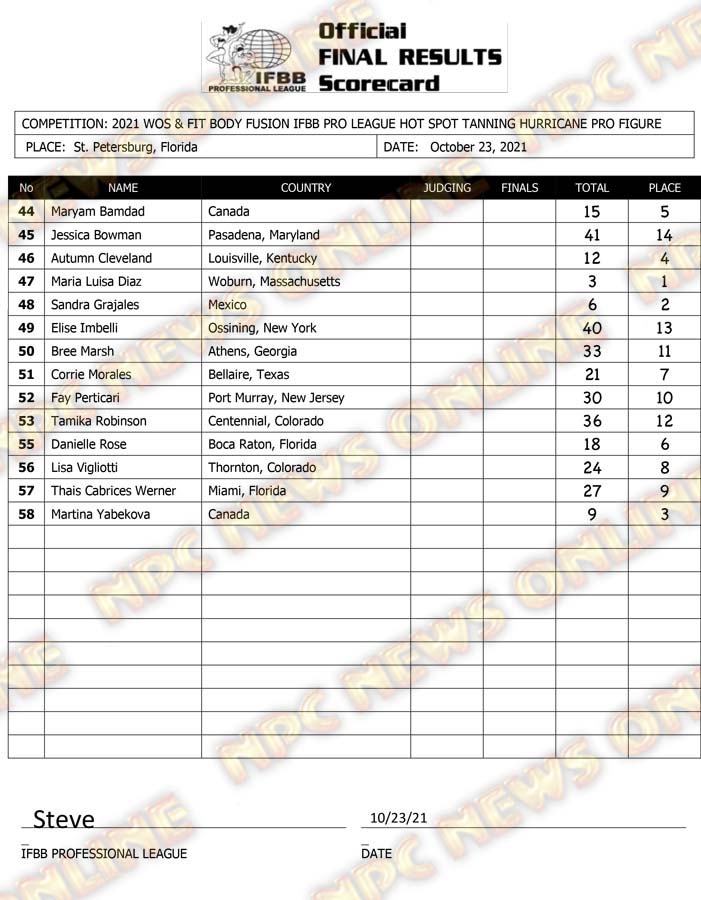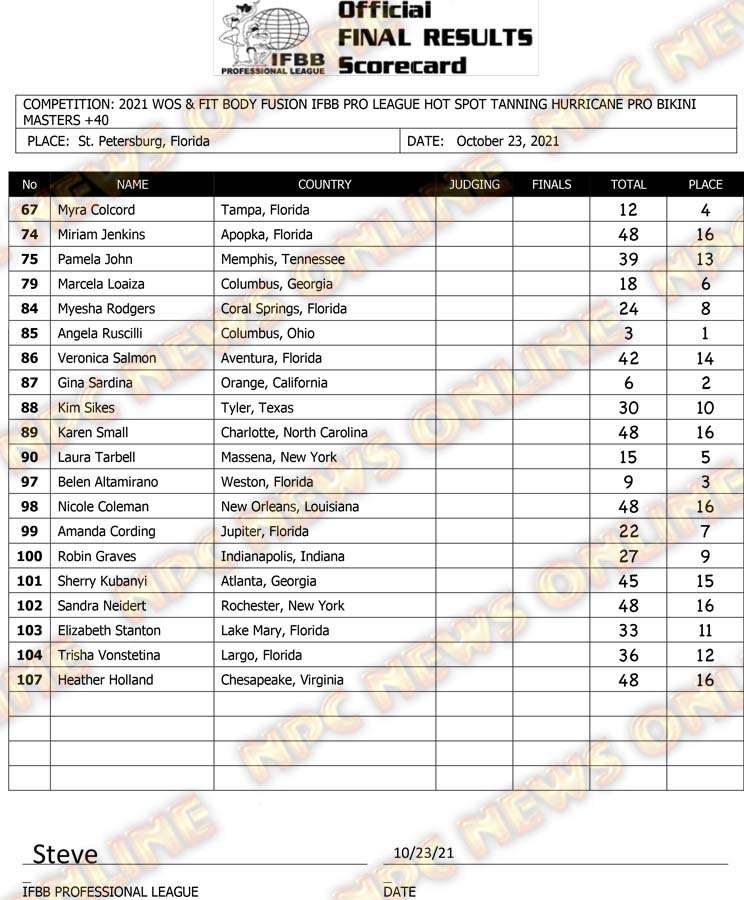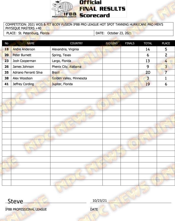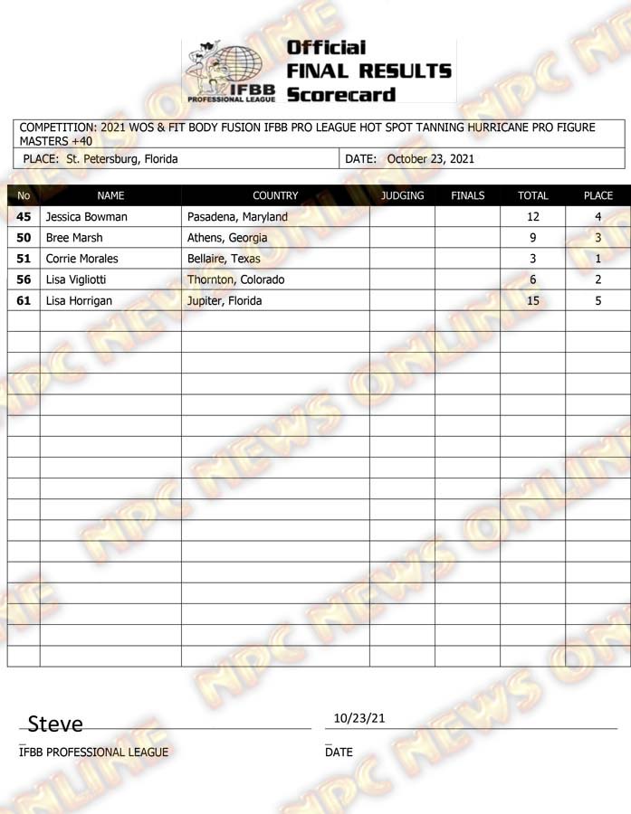 2021 IFBB Hurricane Pro Official Score Cards October 23, 2021Articles, Contest Scorecards, Featured, Features, Reports SHARE Facebook Twitter Pinterest