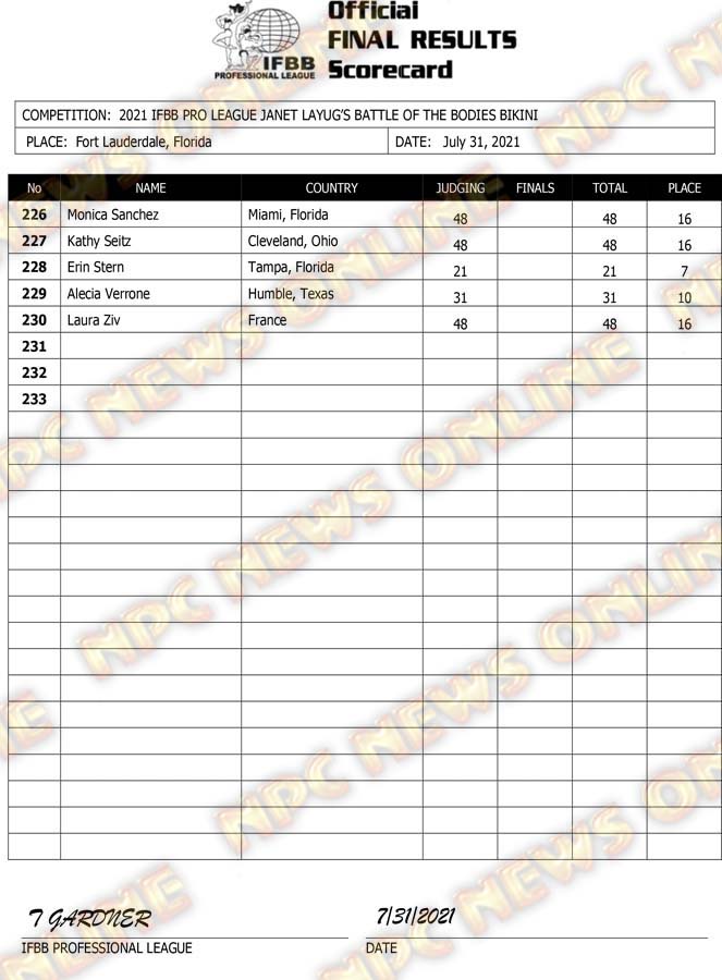 2021 IFBB Janet Layug’s Battle of the Bodies Pro Official Score Cards July 31, 2021July 31, 2021Contest Scorecards, Featured, Features, Reports SHARE Facebook Twitter Pinterest