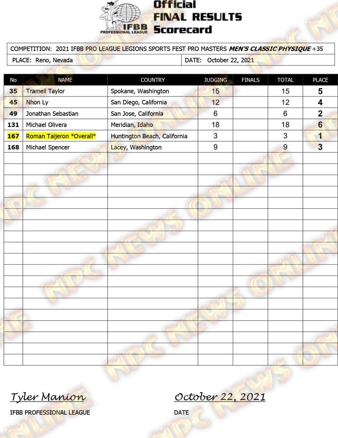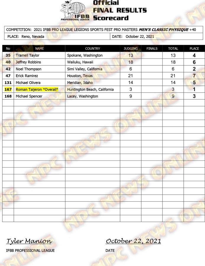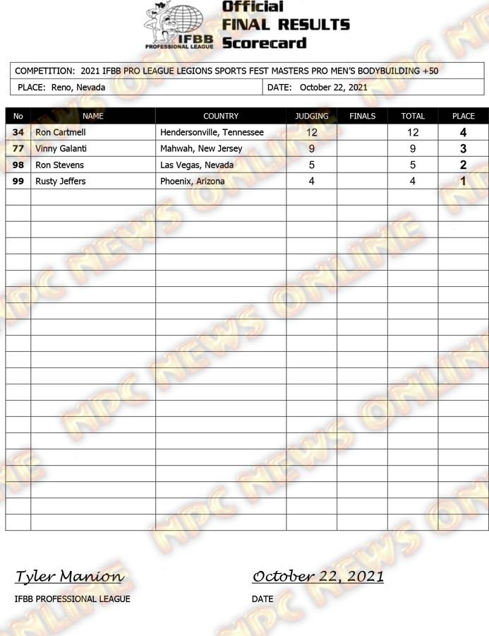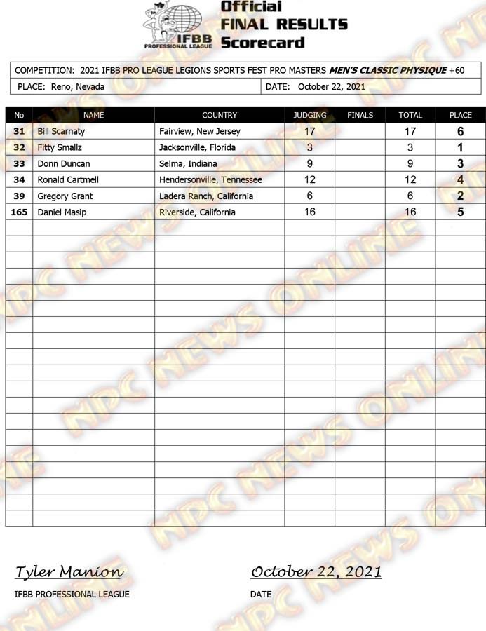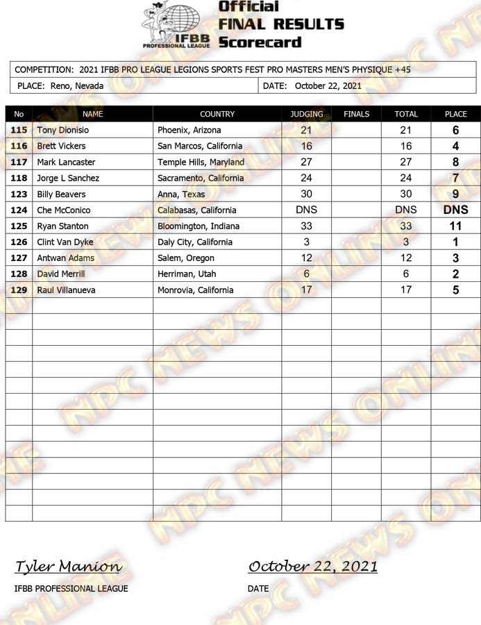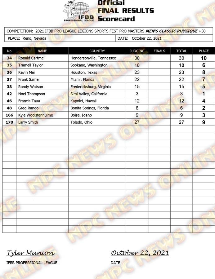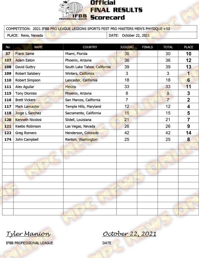 2021 IFBB Legion Sports Fest Pro Official Masters Score Cards October 23, 2021Articles, Contest Scorecards, Featured, Features, Reports SHARE Facebook Twitter Pinterest
