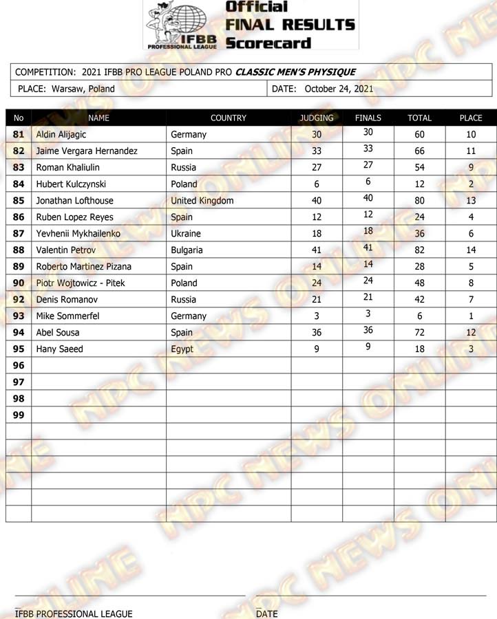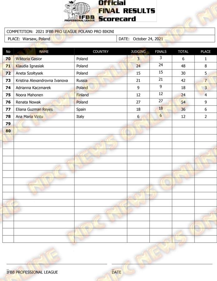 2021 IFBB Poland Pro Supershow Official Score Cards October 24, 2021October 24, 2021Articles, Contest Scorecards, Featured, Features, Reports SHARE Facebook Twitter Pinterest
