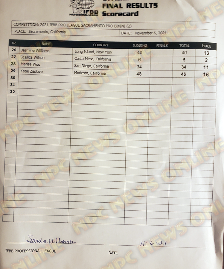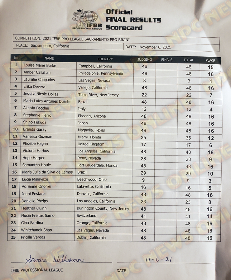2021 IFBB Sacramento Pro Official Score Cards