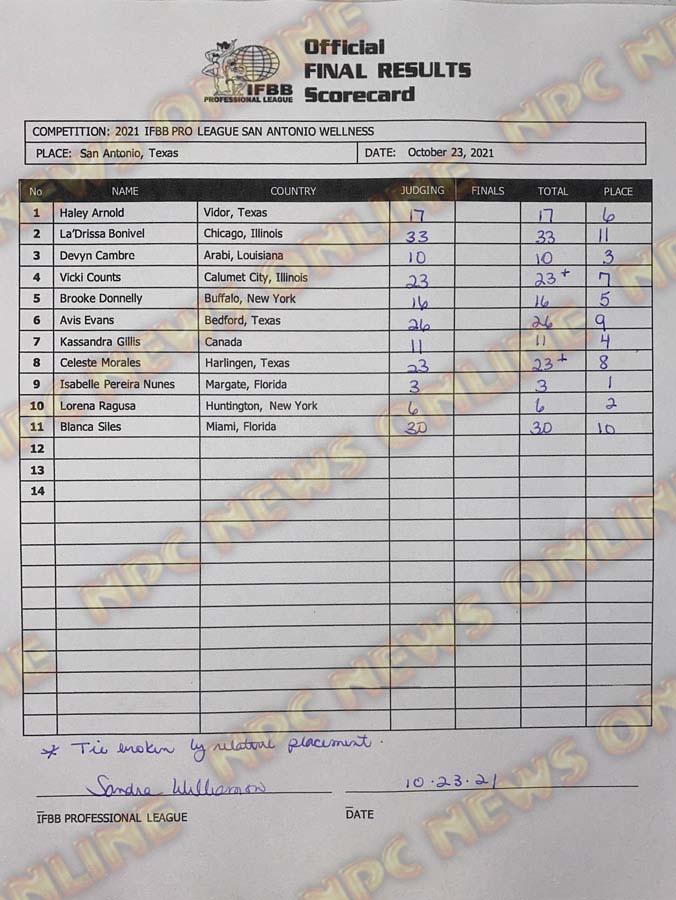 2021 IFBB San Antonio Classic Pro Official Score Cards