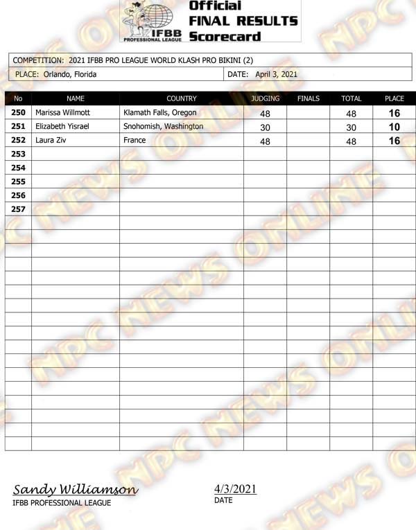 2021 IFBB World Klash Pro Official Score Cards April 3, 2021Articles, Contest Scorecards, Featured, Features, Reports SHARE Facebook Twitter Pinterest