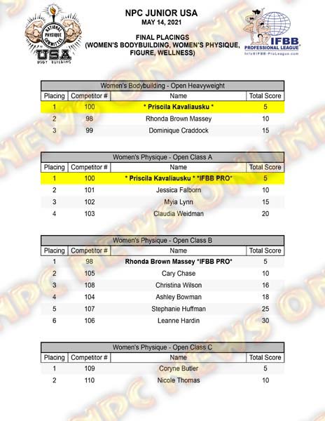 2021 NPC Junior USA Championships Day Two Official Score Cards
