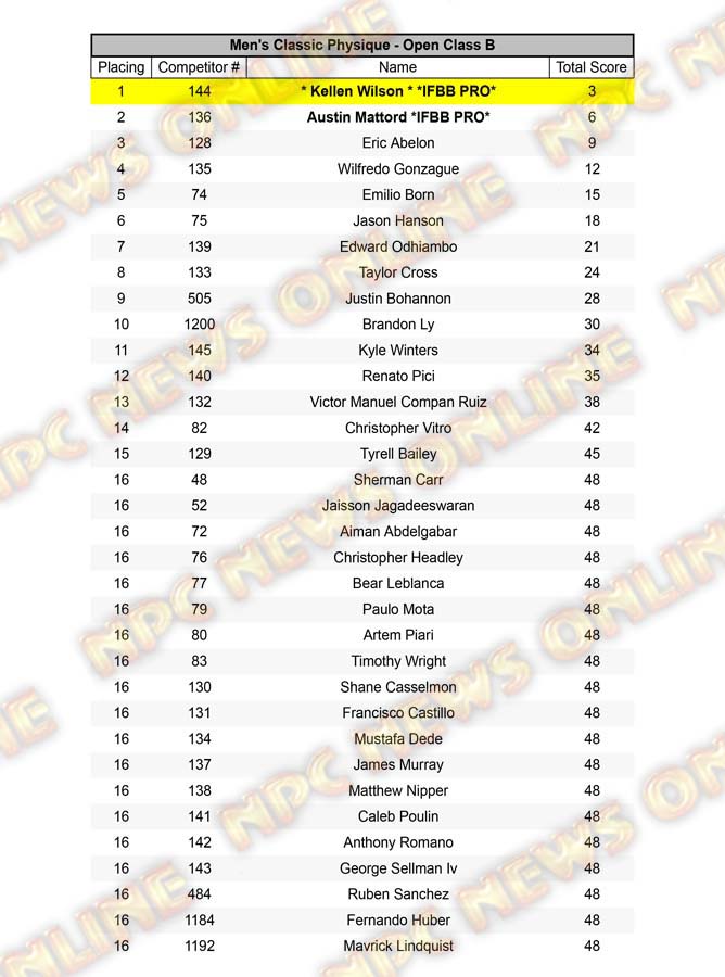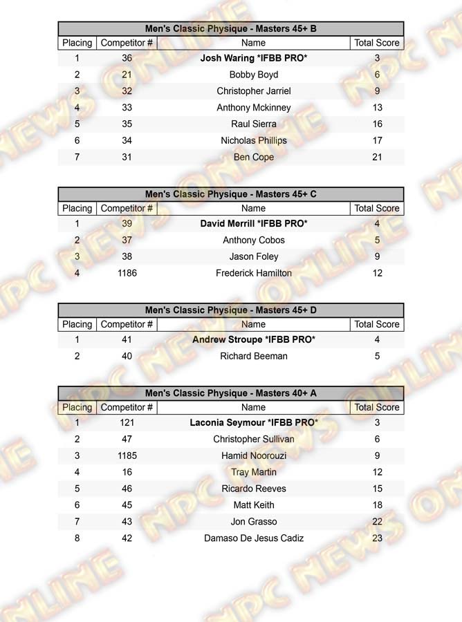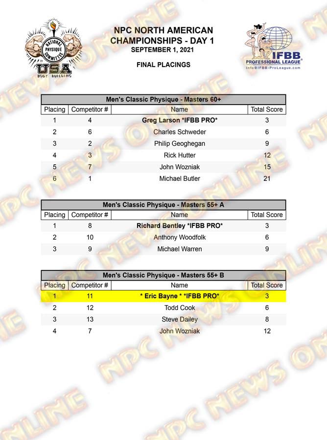 2021 NPC North American Championships Official Day One Score Cards September 1, 2021Articles, Contest Scorecards, Featured, Features, NPC, Reports SHARE Facebook Twitter Pinterest