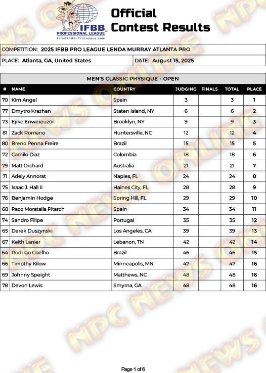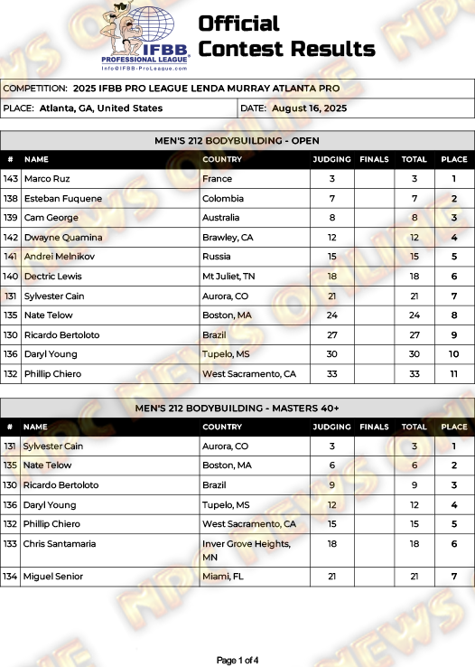 2025 IFBB Lenda Murray Atlanta Pro Official Score Cards August 16, 2025August 16, 2025Articles, Contest Scorecards, Featured, Features, Reports SHARE Facebook Twitter Pinterest