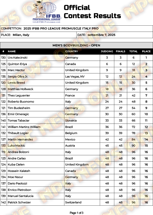 2025 IFBB ProMuscle Italy Pro Official Score Cards September 8, 2025Articles, Contest Scorecards, Featured, Features, Reports SHARE Facebook Twitter Pinterest