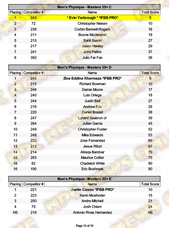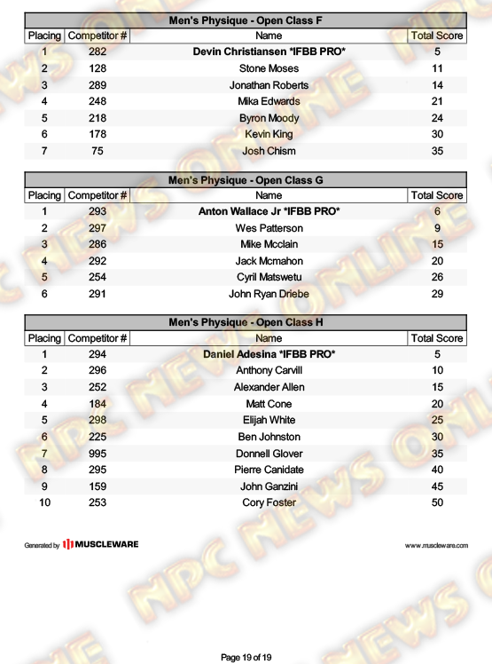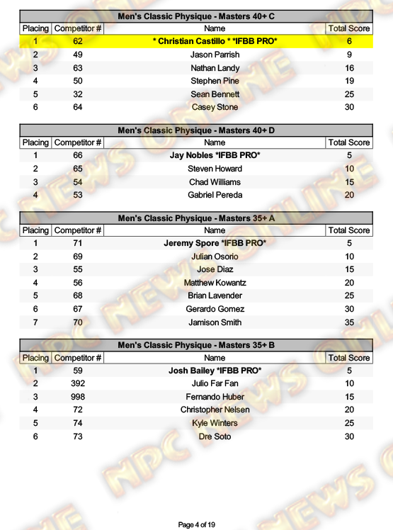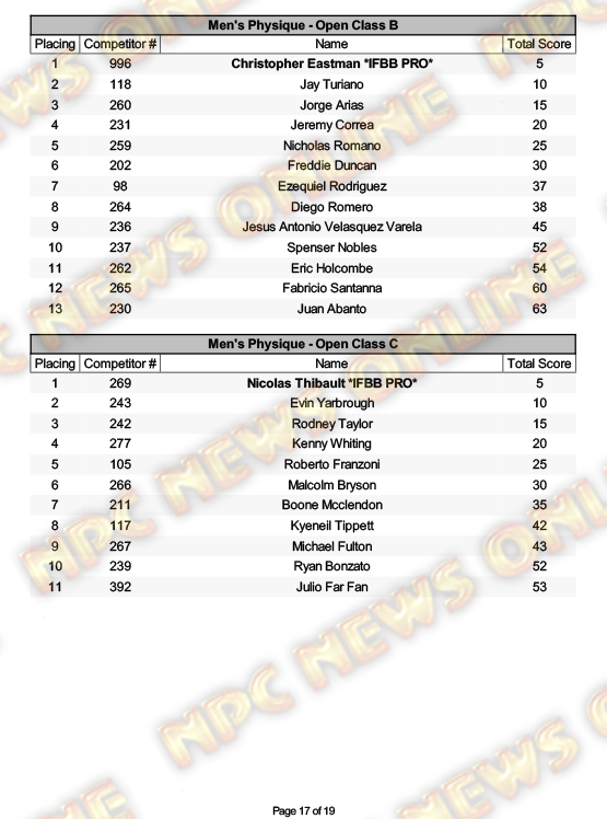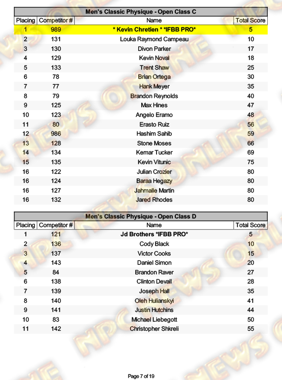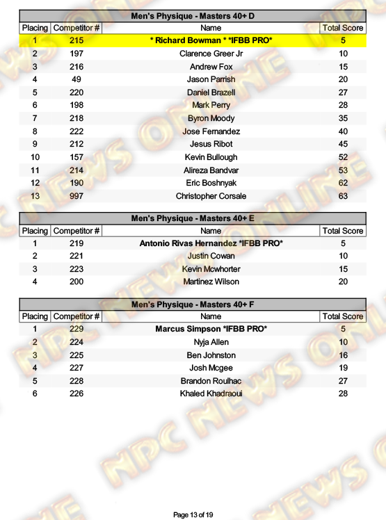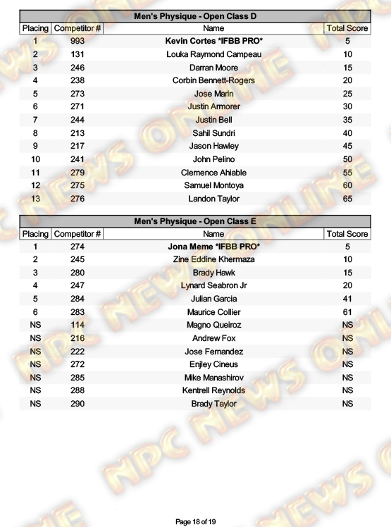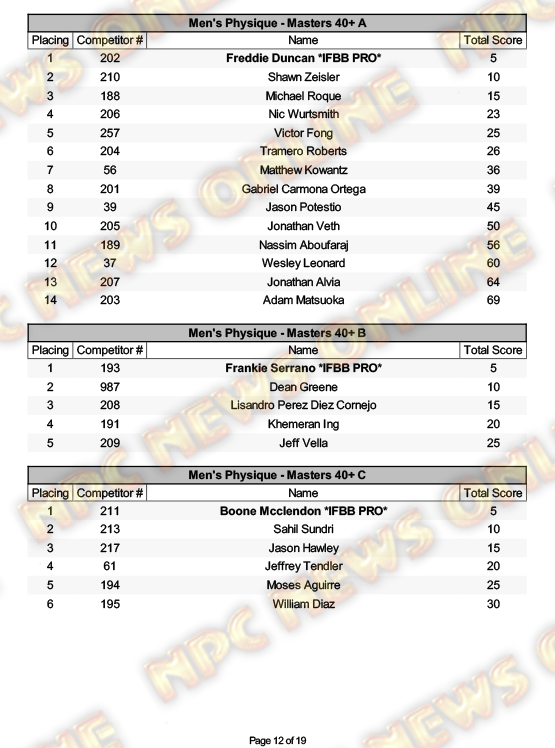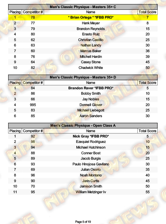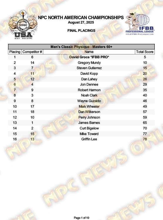 2025 NPC North American Championships Official Day One Score Cards August 27, 20252025 NPC North American Championships, Articles, Contest Scorecards, Featured, Features, NPC, Reports SHARE Facebook Twitter Pinterest