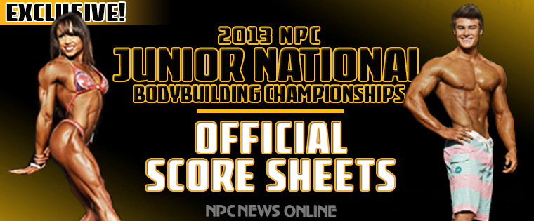 Official score sheets from the 2013 NPC Junior Nationals, complete with total points for each competitor.