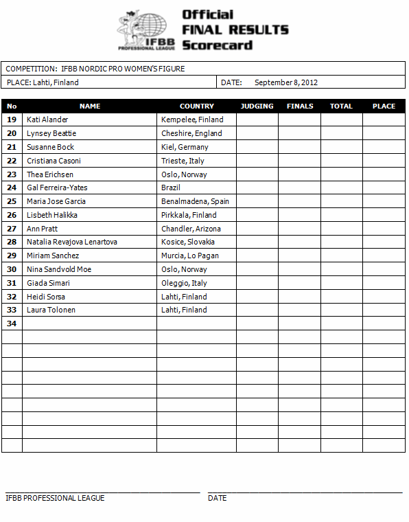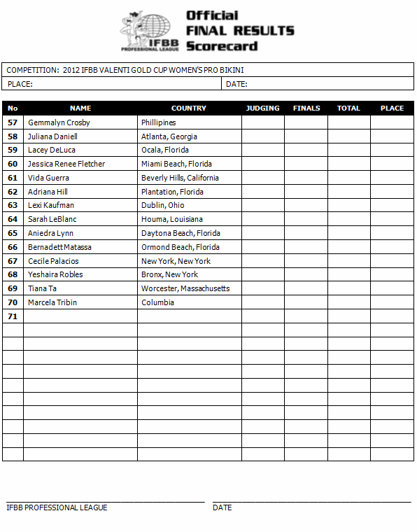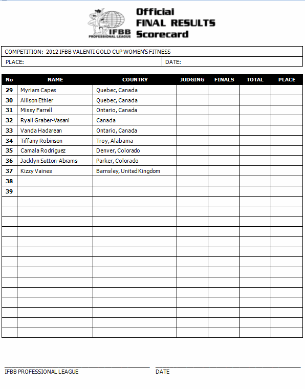 Allison Frahn (8 points), Natalie Waples (7 points) and Larissa Reis (7 points) should all be able to solidify qualifications with top-five finishes. Mallory Halderman (4 points) and Kimberly Sheppard (4 points) will both need solid finishes here to keep up with the leaders and stay ahead of the pack in Florida. Promising rookie Francine Sablan, who won the Overall at the NPC USA Championships in July, makes her pro debut.