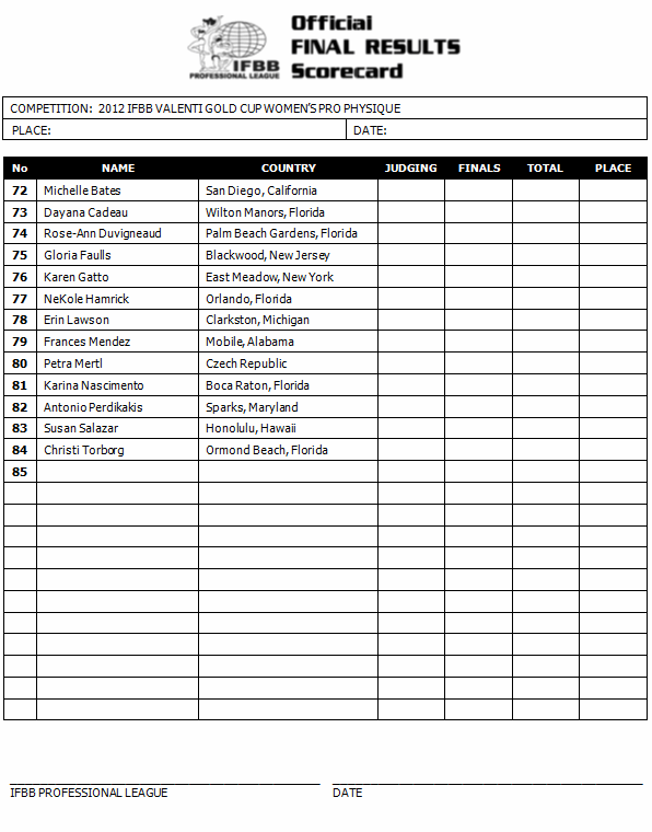 Anthony, who placed 6th at the Figure International in her only contest this year, is the most seasoned competitor in the lineup and the precontest favorite. She enters looking for the the second win of her career, the first coming at last year’s Houston Pro.