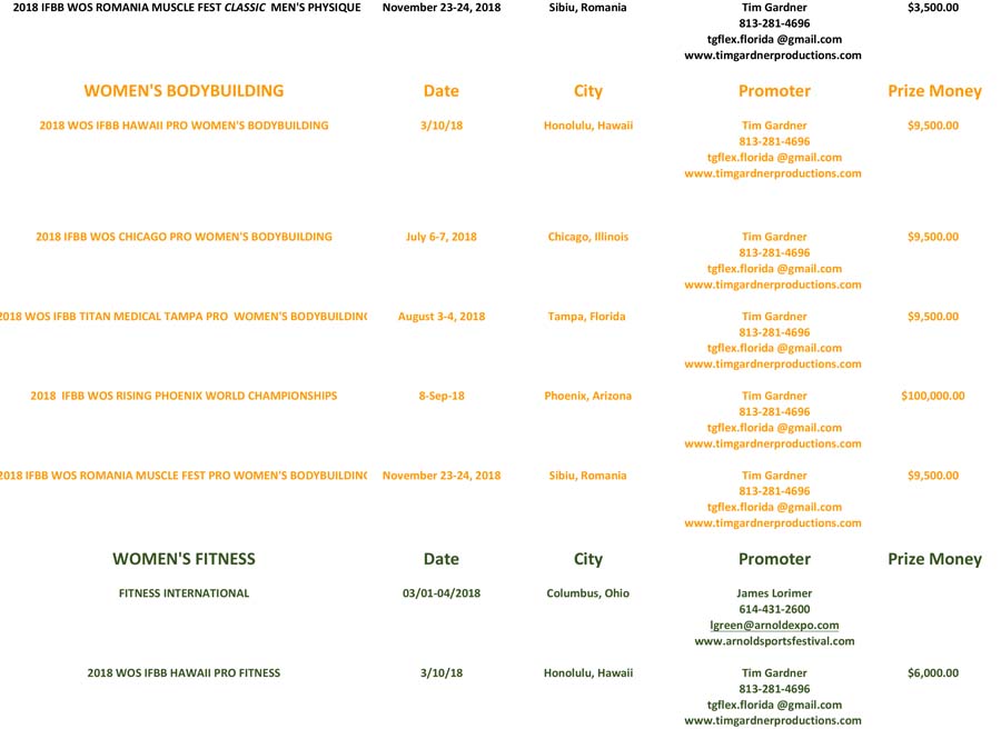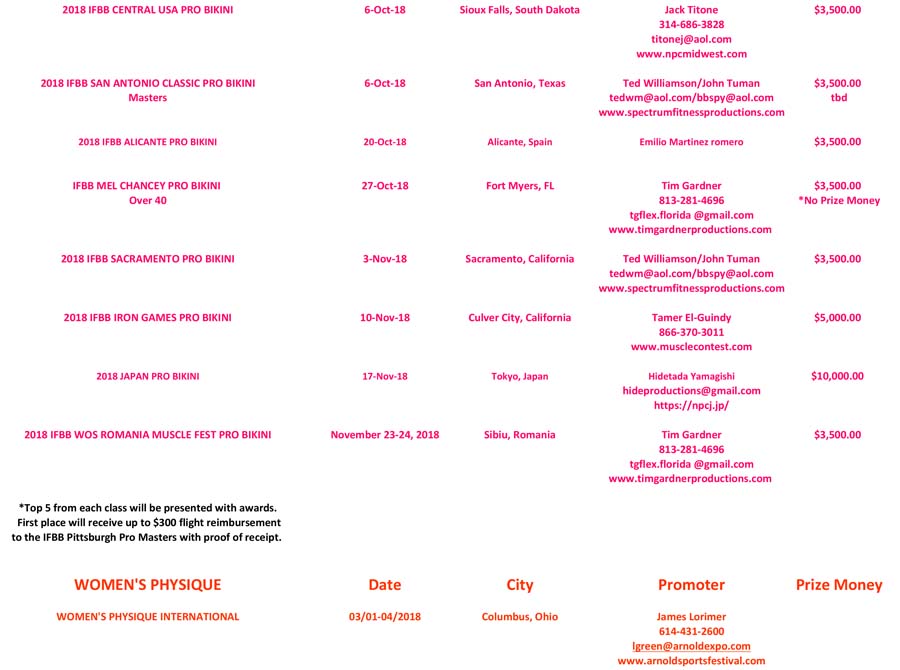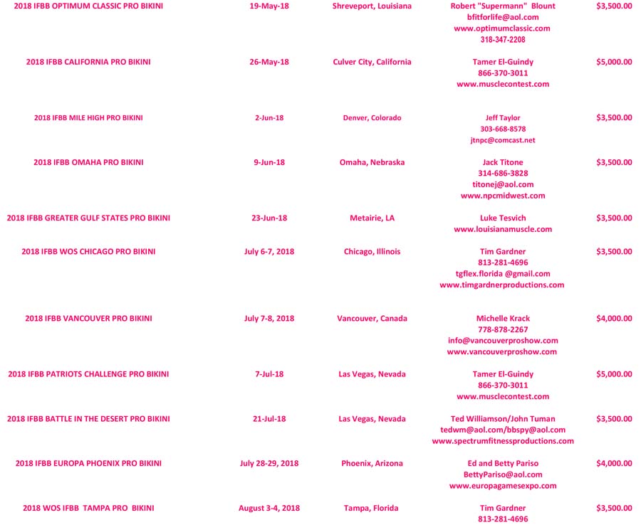 The IFBB Pro League has released its 2018 contest schedule. November 21, 2017Articles SHARE Facebook Twitter Pinterest