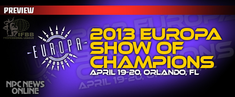 It’s the largest IFBB Pro contest of 2013 this weekend as eighty-four total competitors will take the stage in four divisions – 212 Men’s Bodybuilding, Bikini and Men’s and Women’s Physique – at the Europa of Show of Champions in Orlando, Florida.
