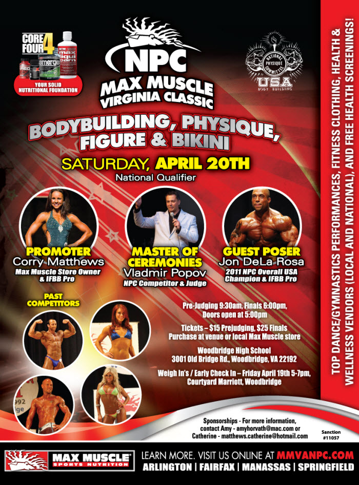 NPC Contest Preview 4/19 to 4/20/13 April 17, 2013April 19, 2013Articles SHARE Facebook Twitter Pinterest See what’s happening in the NPC this weekend! MAX MUSCLE VIRGINIA CLASSIC: WOODBRIDGE, VIRGINIA EUROPA SHOW OF CHAMPIONS: ORLANDO, FLORIDA OTHER EVENTS THIS WEEKEND Flint Mid-Michigan Naturals: Flushing, MI Big Sky Classic: Missoula,MT