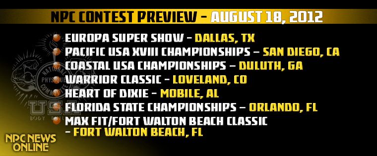 Held in conjunction with the IFBB Europa Super Show and convention, the NPC portion begins with prejudging at 6 pm on Friday and finals on Saturday at 11 am. Reigning Arnold Classic Champ Branch Warren guest poses.