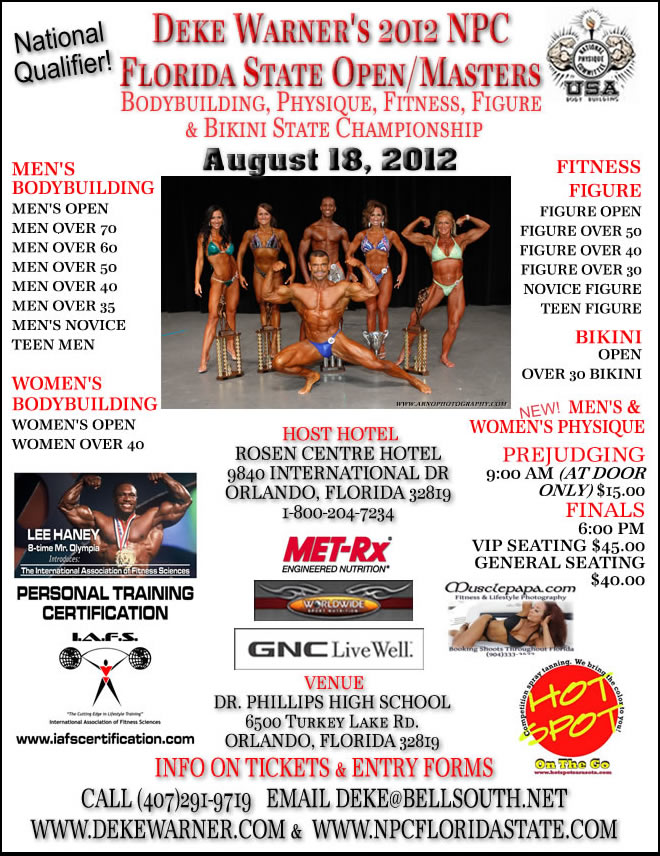 One of the Florida NPC’s most coveted titles will be on the line at the Florida State Championships. There is also the final NPC What the Judges Are Looking For seminar scheduled on Friday night from 6-8pm at the Rosen Centre host hotel. Special guest for the Florida State Championships will be eight-time Mr. Olympia Lee Haney.