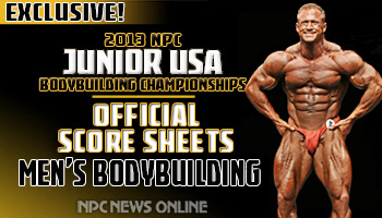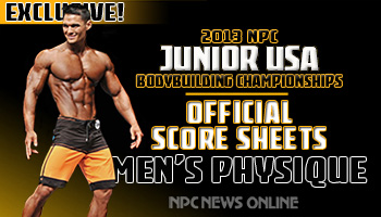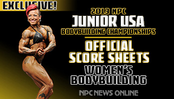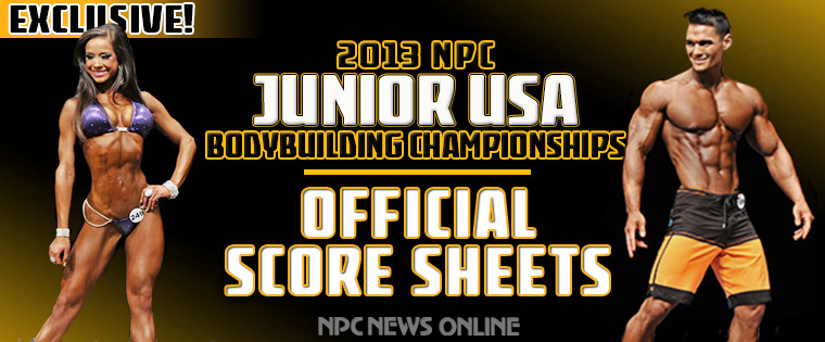 Official score sheets from the 2013 NPC Junior USA Championships, complete with total points for each competitor.