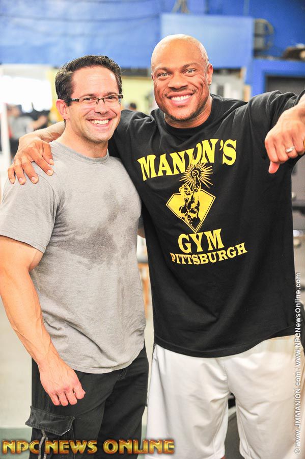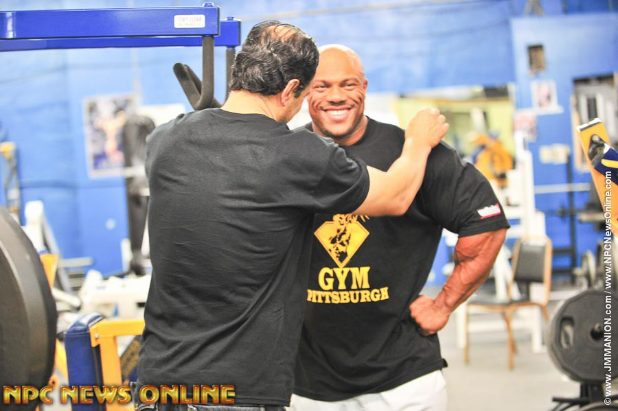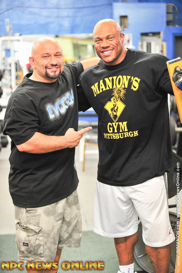 2x IFBB Mr. Olympia Phil Heath trained back at the private NPC News Photo Gym in Pittsburgh, (the former Manion’s Gym), the Sunday after the 2013 IFBB North American Championships. Phil was accompanied by his trainer Hany Rambod. Also there was The Prez Jim Manion, Cassie Manion, Matt Lebedda, Rico & Rayyan Barakat, IFBB Pro Dr. Victor Prisk, Dr. Robert Shogry & IFBB Pro Courtney King.