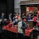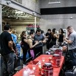 Saturday 9:00am: Just as the coffee began brewing and the blender started buzzing, the doors were opened to the public for the first time ever. Upon checking in at registration, each camper was given a complimentary draw string bag loaded with samples, a shaker, a bag of Syntha6 protein, a PUSH shirt and an official Project Flex event tshirt all supplied by BSN. Campers were also provided with raffle tickets for a chance to win prizes including products from BSN, meal bags from 6 Pack Fitness, BSN branded training belts from Cardillo Belts, Candice Keene’s ProCakez, bars and chips from Quest Nutrition and a limited edition autographed print.