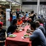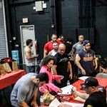 1:15pm: Rick and the team at Muscle Maker Grill Deerfield served a healthy lunch for everyone that included grilled chicken, brown rice, broccoli and whole wheat pasta over marinara sauce. Flex and Ali took the mic once again to finish picking out the winning numbers for the remainder of the raffle prizes. They saved the best for last, giving away a limited edition 18×24” autographed print of a Ryan Loco photograph of Flex backstage at the Olympia which is also featured on the wall at the gym.